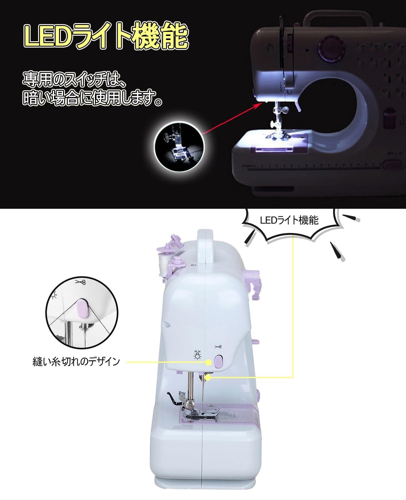 本体、ACアダプター、フットペダル、ボタンホールフット、糸通し、テスト用布、針×2、巻糸×3、ボビン×3、取扱説明書