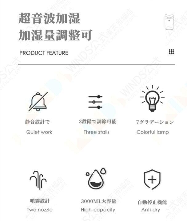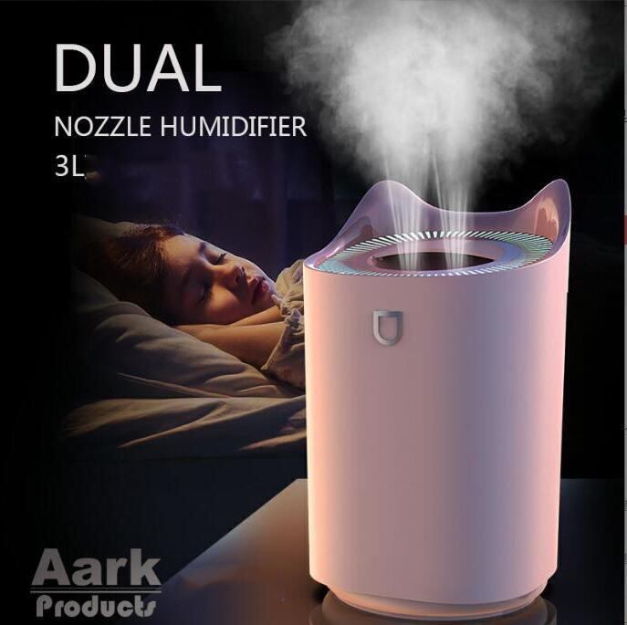 ・この加湿器は 21〜30平方メートルの家庭に適しており 2 6〜4 0リットルの水タンク容量 デュアルノズルフォグ 機械制御 8時間以上のタイマーと水不足や停電保護をサポートし USB電源を使用し プラスチック材料 36デシベル以下のノイズ わずか5Wの電力は 創造的な3リットルのデュアルスプレー加湿器です